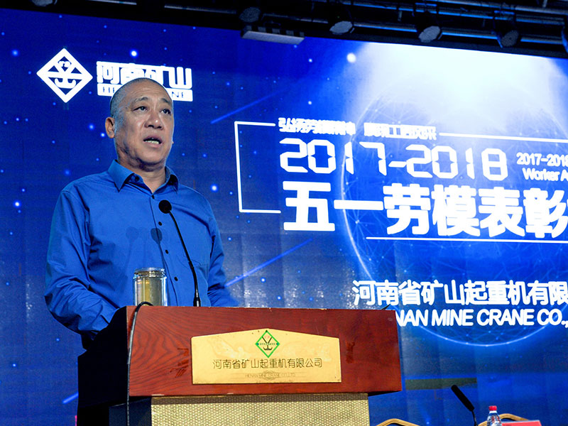 公司創(chuàng)始人、黨委書記崔培軍發(fā)表重要講話。他首先向全體員工致以節(jié)日的問候,向獲獎勞模表示祝賀!感謝大家為公司所做出的努力與貢獻。他就勞模精神、工匠精神、質量比武、生產(chǎn)工期、素質素養(yǎng)五個方面提出希望和要求。希望在勞模精神的鼓舞下,全體員工要抓緊生產(chǎn),服務客戶。繼續(xù)深化質量月活動。立足本職崗位,再創(chuàng)新的佳績。踐行工匠精神,以更高標準嚴格要求自己。團結一心,眾志成城,努力將河南礦山打造成為一個享有盛譽的起重企業(yè)。